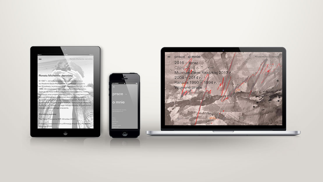 Projekt graficzny oraz realizacja www oparta o system Wordpress Dwie strony internetowe poświęcone wrocławskiej artystce Renacie Micherda-Jarodzkiej. Strona dot. malarstwa: [Renata Micherda-Jarodzka] Strona dot. wnętrz: [Renata Micherda-Jarodzka design]
