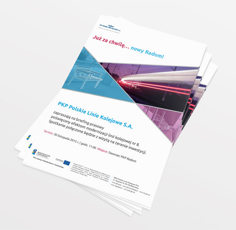 Desta projektuje dla PKP Polskie Linie Kolejowe SA. Grafika została przygotowana do drukowanych materiałów promocyjnych (w postaci broszur, zaproszeń, artykułów, tablic informacyjnych oraz wielkoformatowych reklam stojących typu roll-up), przedstawiających najnowsze inicjatywy modernizacyjne PKP. Projekt realizowany dzięki Fabryce Komunikacji Społecznej. Dziękujemy za współpracę! [www.fks.com.pl][www.pkp.pl]